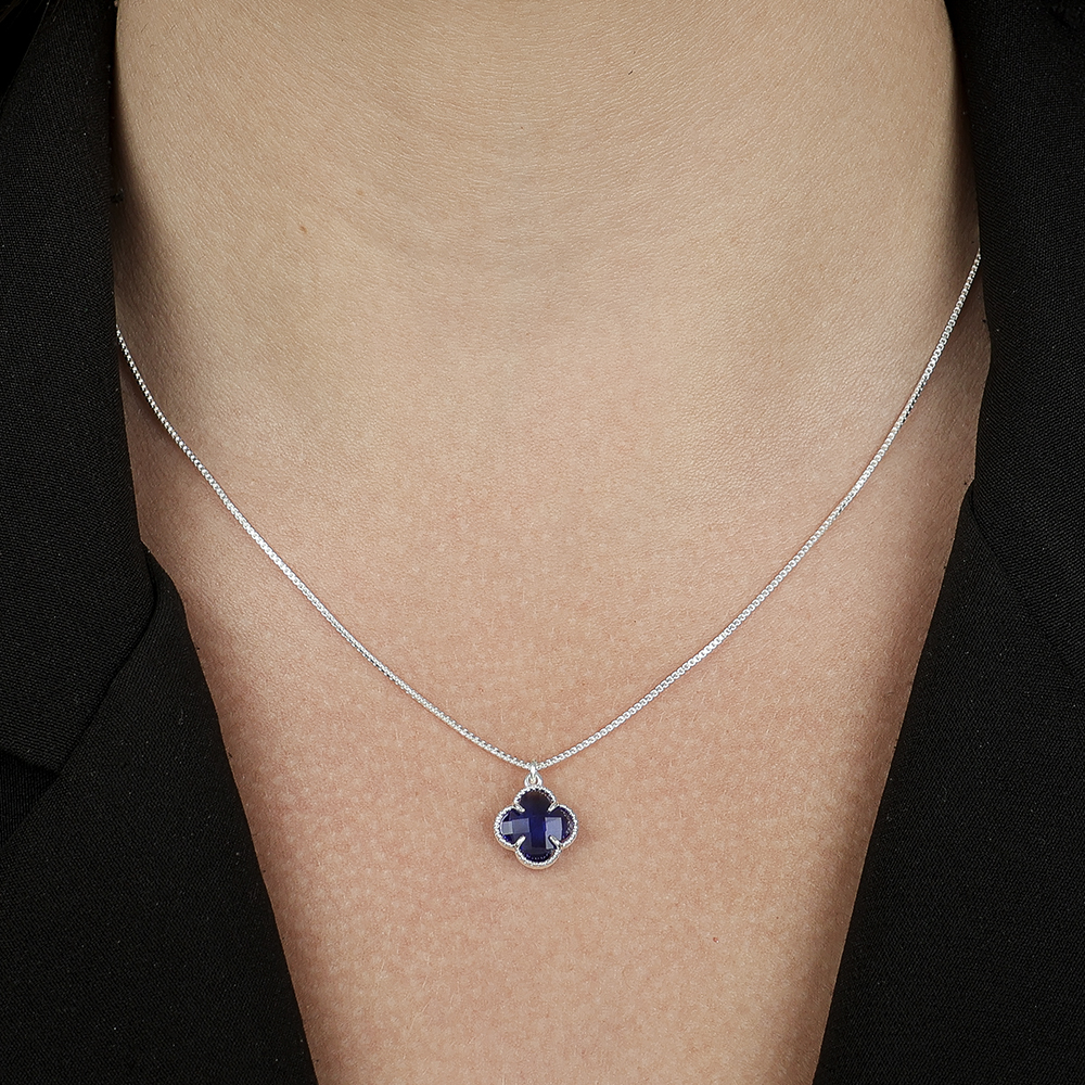 Colar Zircônia de Trevo Azul em Prata 925
