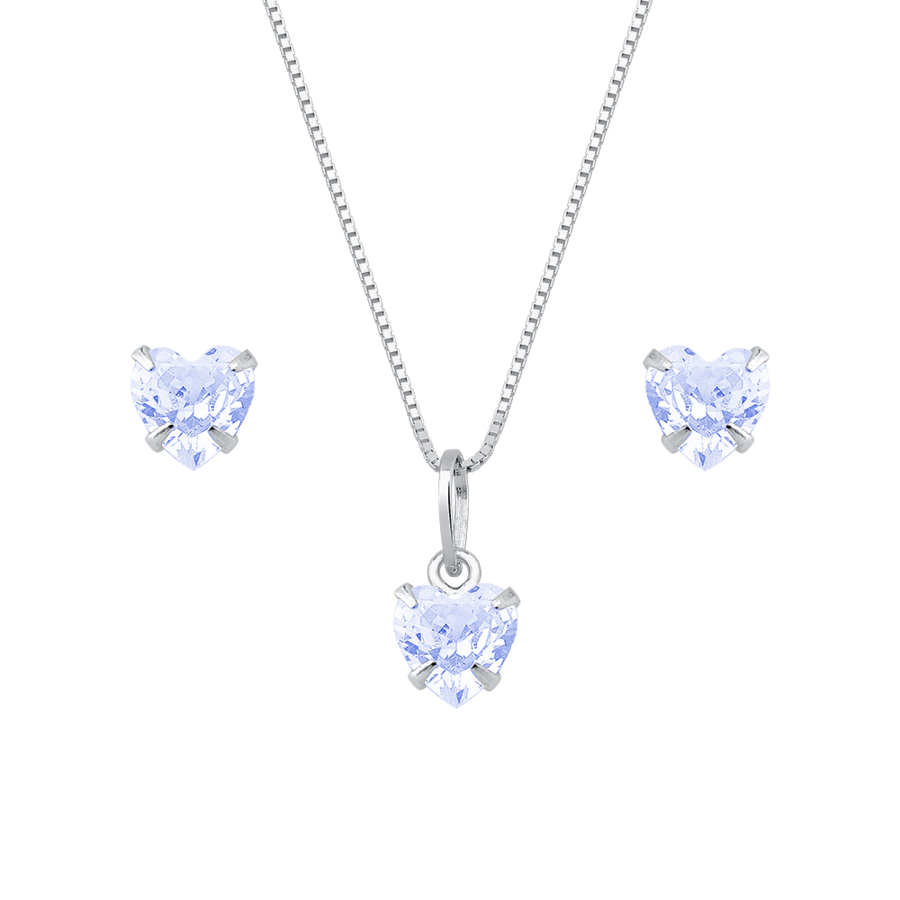 Conjunto de Coração Roxo em Zircônia Prata 925