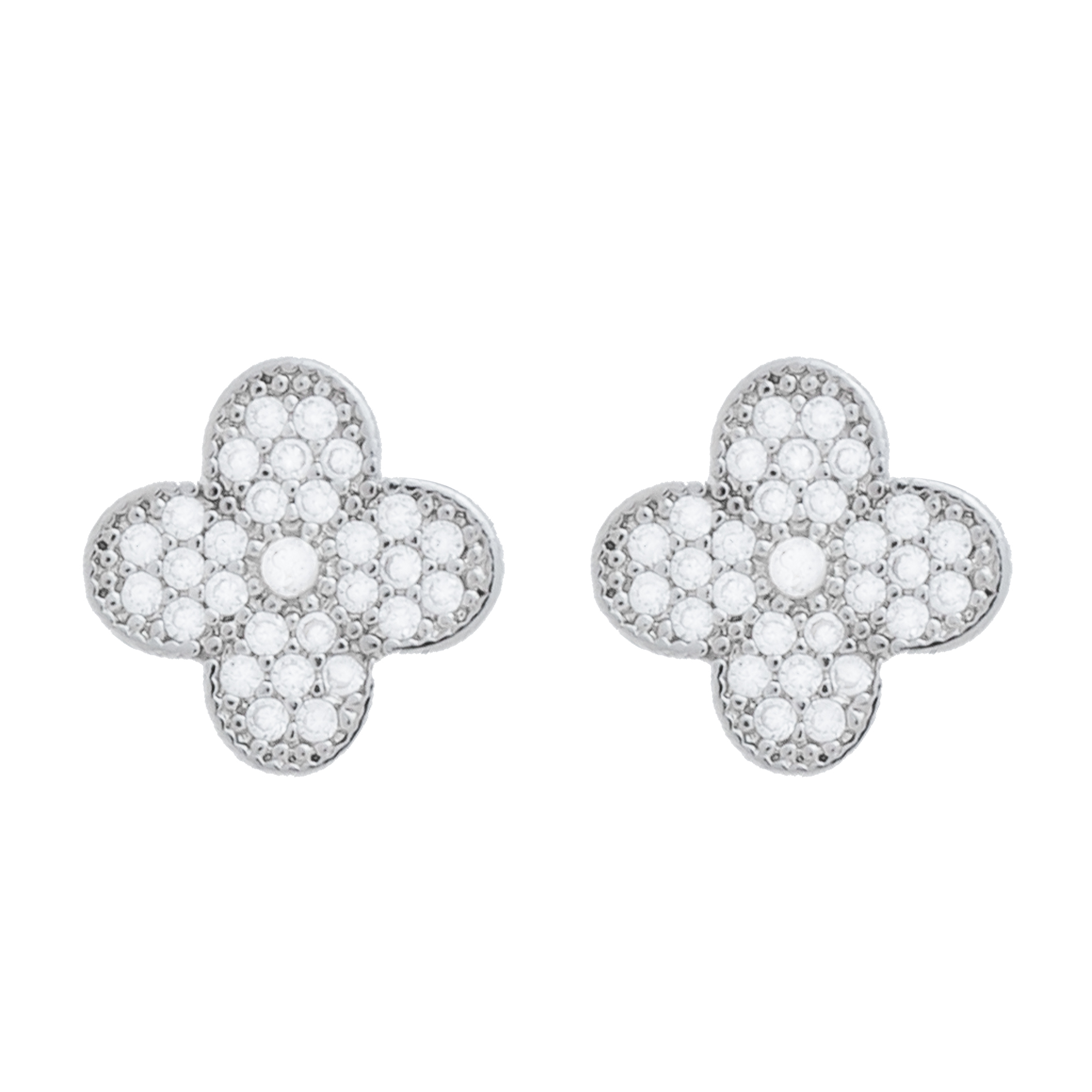 Conjunto Prateado de Trevo Cravejado de Zircônia