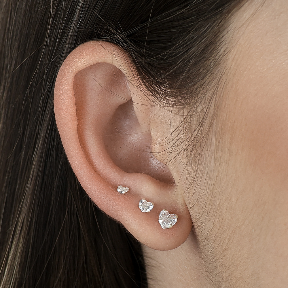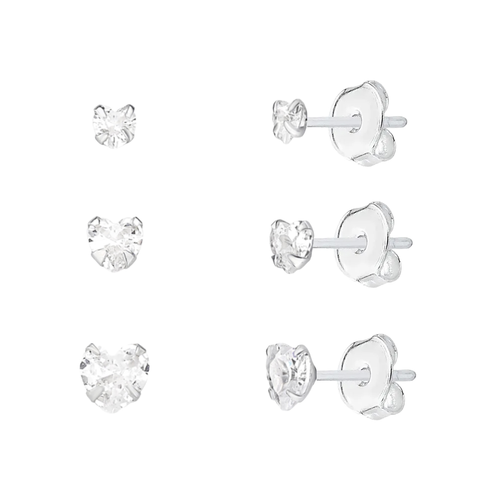 Trio de Ponto de Luz de Coração em Prata 925Trio de Ponto de Luz de Coração em Prata 925